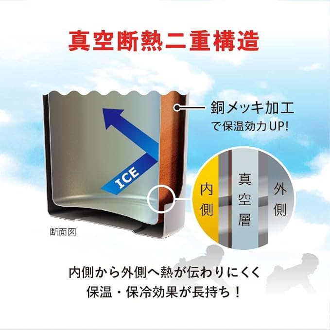 材質 内びん:ステンレス鋼 胴部:ステンレス鋼(ポリエステル樹脂塗装) 口金:ステンレス鋼 ふた・せん:ポリプロピレン/ロックリング・プッシュボタン:ABS樹脂/ボディリング・パッキン:シリコーンゴム
