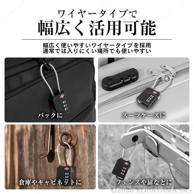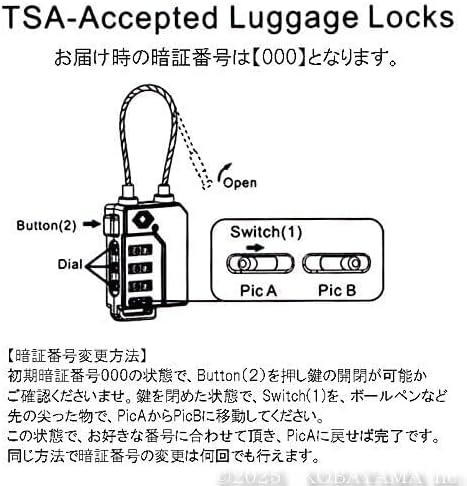 TSAロック ワイヤー南京錠 ブラック 旅行用 安心 防犯グッズ ダイヤル式 (T-2)