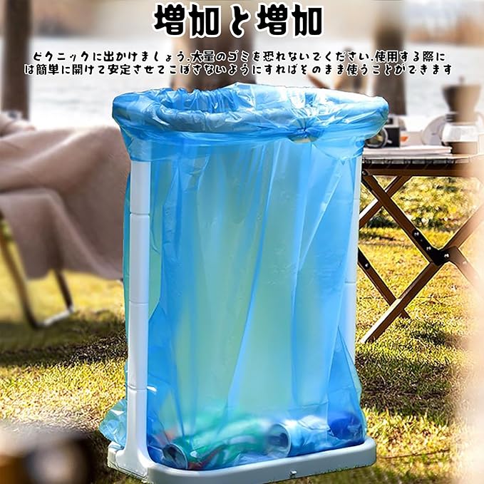 【折りたたみ式デザイン】: 当社のゴミ袋ホルダーは、容量と高さが大きく設計されています。組み立て後の全体のサイズは、38x26x54cm / 15x10x21.3インチ(長さx幅x高さ)です。キャンプ用ゴミ袋ホルダーは、持ち運びに便利な折りたたみ式デザインを採用しています。収納が簡単で貴重なスペースを占有しないため、どこにいてもゴミ処理のニーズに簡単に対応できます。
