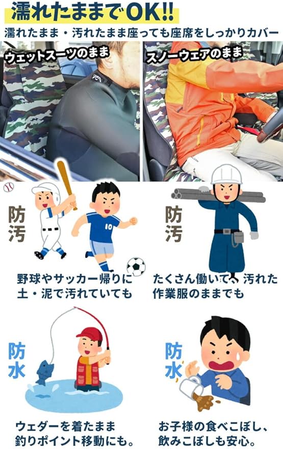 NOGES シートカバー 防水 車 カーシートカバー カバー シート フロントシート用 サーフィン 釣り 汎用 簡単取りはずし! ずれにくく完全防水で濡れたまま座れる ウェットスーツ素材で丸洗いもOK! (チャコールグレー)
