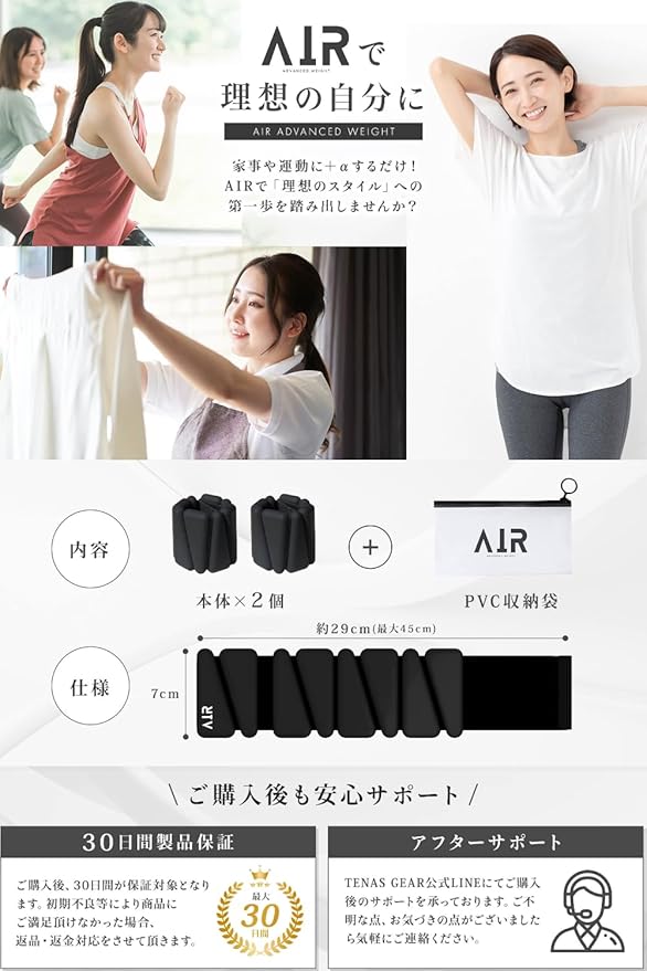 ✅【商品コンセプト】女性目線でカワイイデザインのリストウェイト・アンクルウェイトを皆様に届けたい。引き締まった体を手に入れたいけれど、運動は苦手、なかなかやる気にならない、そんな方々の背中を少しでも押すことが出来ればという2つの思いから、AIRが生まれました。