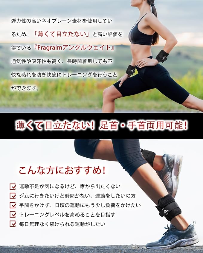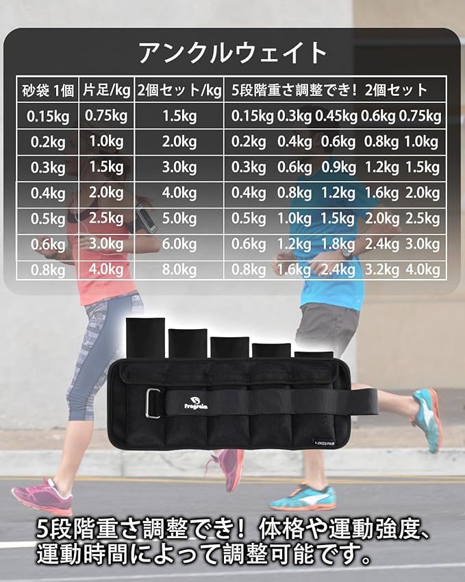 Fragraim アンクルウェイト 5段階調節 2個組最小1.5kg-最大8kg 筋トレウェイト 重り 手首 足首 パワーアンクル 重さ調整可能 片足0.75kg/1.5kg/2kg/2.5kg/3kg/4kg ソフト 速乾 通気 ウォーキング ジョギング 体幹トレーニング エクササイズ 男女兼用 初心者