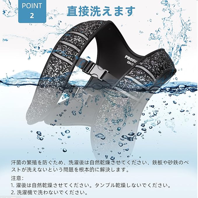 【水で直接洗う】鉄ブロックや鉄砂の詰め物とは別の新開発の詰め物で、PROIORNのウェイトベストは直接洗うことができ、清潔さを確保します