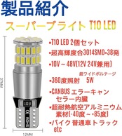 T10 LED ポジションランプ 動作電圧(10V~48V) 12V 24V 兼用 T10 LED 3014 38SMD  超高輝度レモンイエロー 2個セット 照明角度: 360度 5w 幅1.1cm 高さ3.6cm こちらの商品は 10V~48V対応のワイドボルテージ商品になります。 バイク 普通車 トラック の ポジション ライトにご使用になれます。 全ての車両にオススメ致します。 明るさと鮮やかさを極限まで追及した超高輝度T10LEDライトは正真正銘直視厳禁の明るさ。 明るいレモンイエローT10ポジションライトをお探しの方にオススメ致します。 こちらの商品は高品質商品の為過度な発熱もございません。 明るさ品質共にご満足をお約束致します。 画像はUDクオン  ダイハツムーヴ 12V 24V 兼用ですので一般車でもご使用になれます。 12Vでも24Vと明るさは変わらないので一般車にもオススメです。 普通車、バイクもOK!!