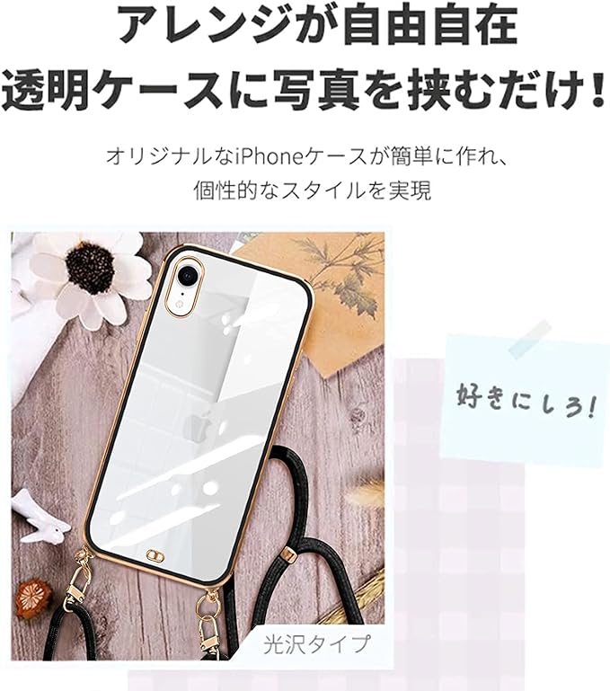 iPhone XR 用 ケース ショルダー クリア TPU いphoneXR スマホケース カバー 肩掛け 首掛け 斜めかけケース 可愛い かわいい 韓国 透明 薄型 耐衝撃 アイフォンXR(ブラック)