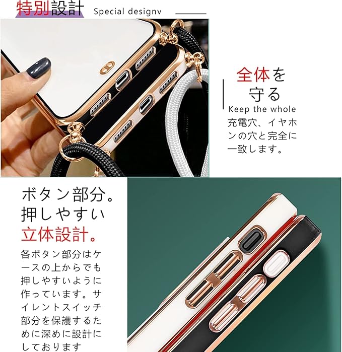 【ネックレスケース】シリコンケースには首から下げられるようにショルダーストラップが付いており、まるでアクセサリーのようにスマホを着用できます。落下防止はもちろん、紛失防止にも役立ちます。 特に旅行や、小さなお子様がいるお母さんにおすすめ、手荷物がある時にスマホを持ち続ける必要がなくなりますし、スマホを落としたり無くしたりといった心配もなくなります、バッグから携帯を取り出す手間がはぶけます。