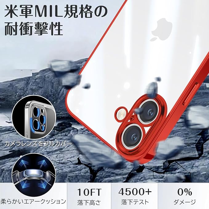 iPhone 16 用ケース クリア tpu シリコン メッキ加工 スリム 極薄軽量 透明 スマホケース 耐衝撃 QIワイヤレス充電対応 ストラップホール 黄変防止 一体型 人気 アイフォン16 用携帯カバー レッド