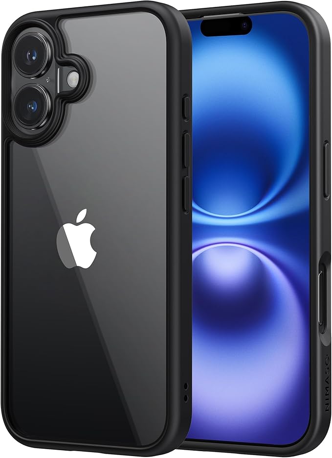NIMASO iPhone16用ケース クリア 黄変防止 耐衝撃 米軍MIL規格 SGS認証 PC背面 いPhone16対応 ケース 傷つけ防止 超薄型 軽量 ワイヤレス充電対応 ストラップホール付き アイフォン16対応(6.1インチ) スマホケース(氷星シリーズ)ブラック NSC24G1474