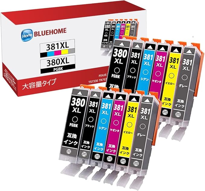 BCI-380 BCI-381 インクカートリッジ キャノン(Canon)用 インク 380 381 BCI-380XL BCI-381XL インク (BCI-380PGBK BCI-381BK BCI-381C BCI-381M BCI-381Y BCI-381GY) 合計12本 TS8130 TS8230 TS8330 TS8430 インク
