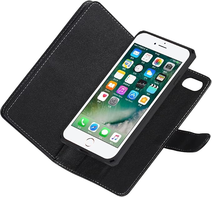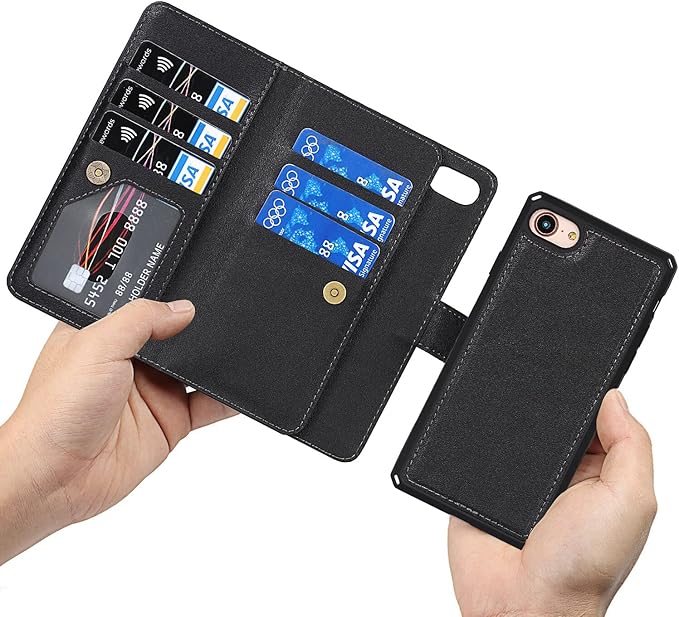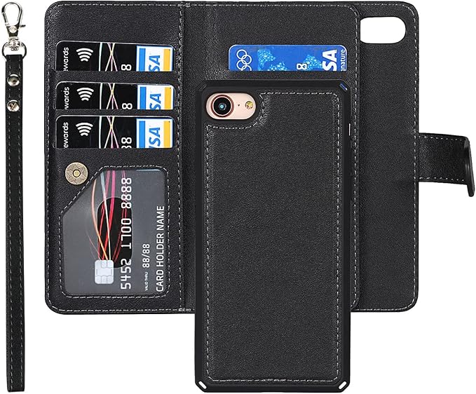 Pelanty 取り外し自由 両用ケース for iPhone SE 第3世代 2022/SE 2020 第2世代 2in1ケース手帳型 ストラップ付き for iPhone 7/8 分離式 2way 背面カバー 大容量 財布型カード収納 小銭入れ札入れ 携帯カバー 合成PUレザー+TPU スタンド機能 縄掛け マグネット 耐衝撃 アイフォン7/8/SE2/SE3(ブラック)