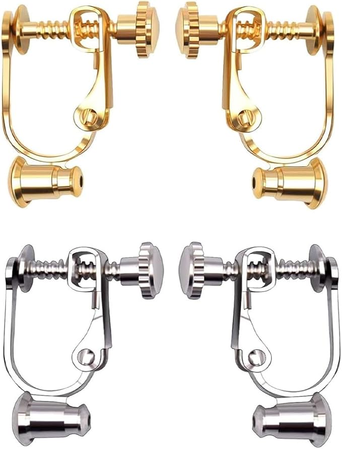 イヤリング コンバーターイヤリング レディースイヤリング 2色セット 女性 (ゴールド シルバー 2種 4個) ネジ式 イヤリングからイヤリングに変換するパーツ ノンホールピアス
