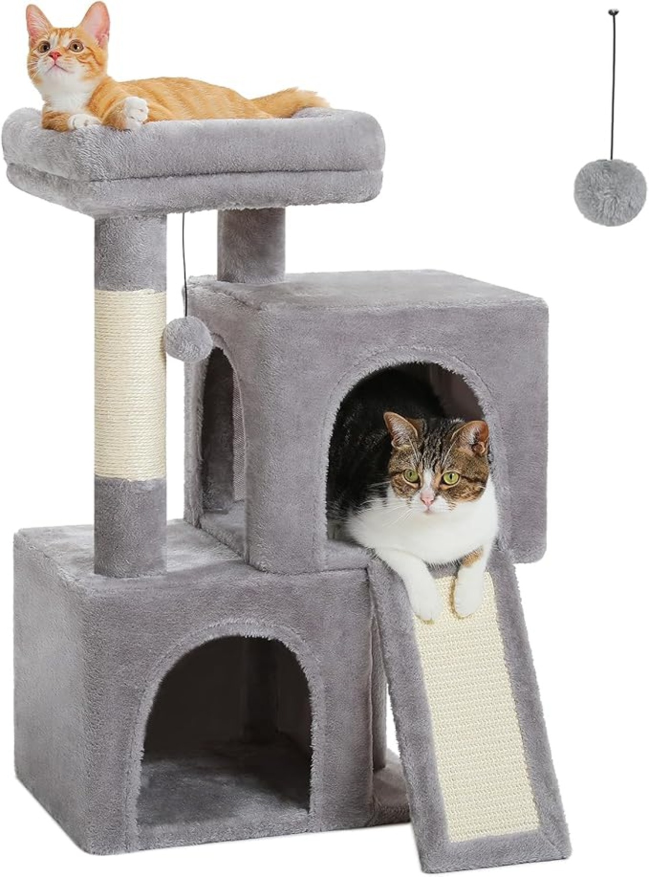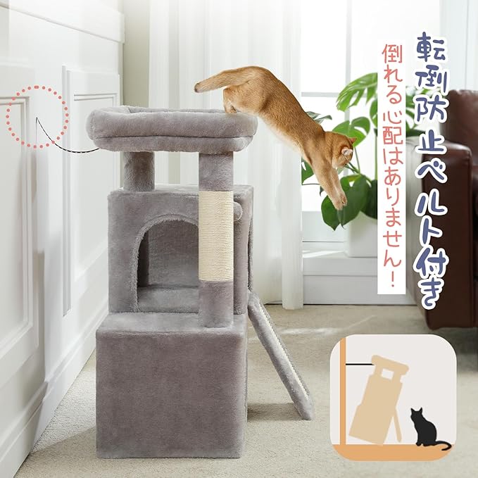 PAWZ Road キャットタワー ミニ 低い 子猫向け 猫タワー 低め 小さめ 小型 シニア 階段 ケージ用ステップ コンパクト 猫爪研ぎ 麻紐 据え置き 猫ハウス 隠れ家 おもちゃ 人気 短足 - 高さ77cm グレー