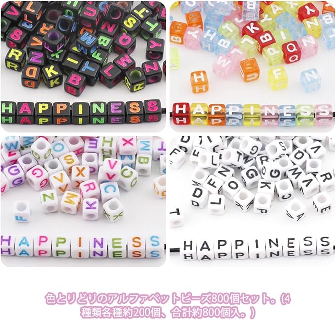 【多彩なビーズセット】色とりどりのアルファベットビーズ約800個セット。(人工包装のため、アルファベットはランダムです、数に上下5つの誤差が生じることがあります。ご了承ください。)