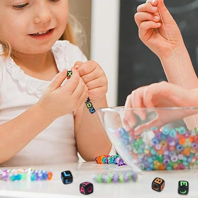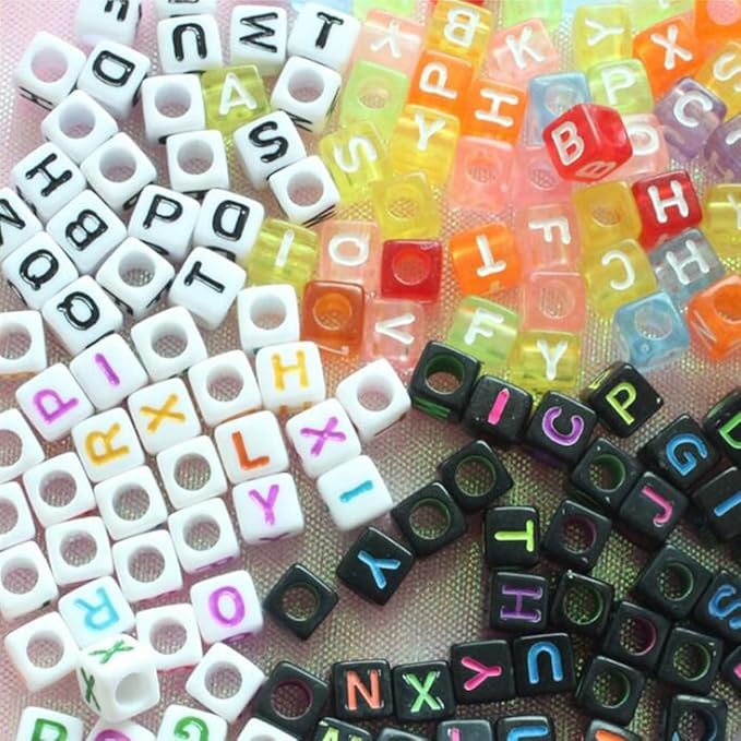 GOODCHI ビーズ アルファベットビーズ アルファベット パーツ カラフル キューブ型 DIY ブレスレト ジュエリー ハンドメイド アクセサリー スペーサービーズ 6mm 約800個