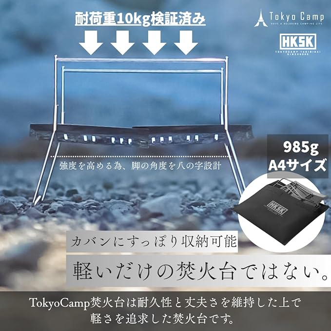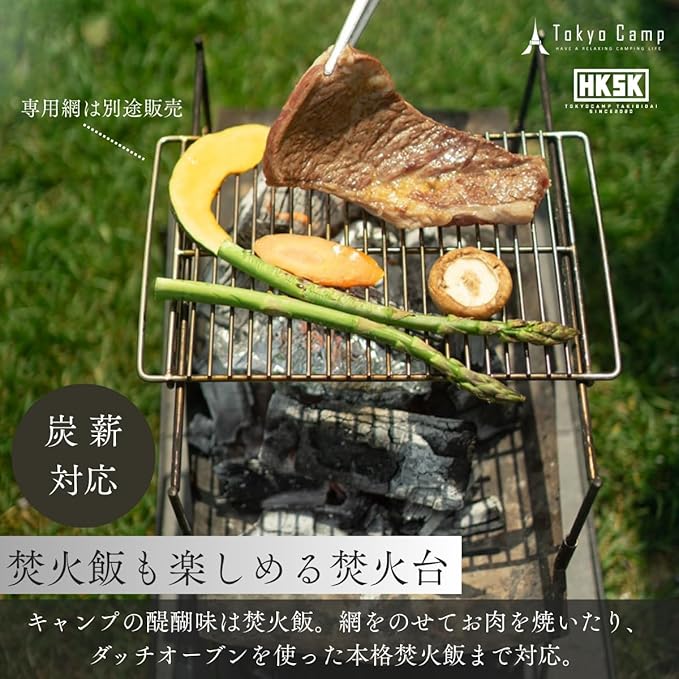 Tokyo Camp 焚き火台 HAKOSUKA 折りたたみ式 A4収納 コンパクト 軽量 簡単設営 薪割り不要 ステンレス製 ソロ キャンプ ファミリー対応 バーベキューコンロ グリル