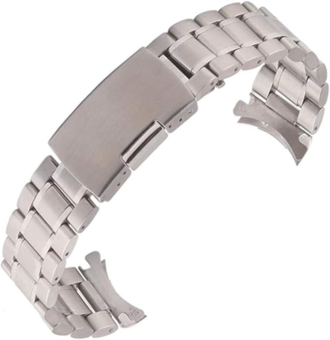 ステンレス無垢の3連ベルトです。 バックルはチュチマなどにも採用されているサイドプッシュ式になります。 爪を傷めることなく取り外しができます。 弓カン一体型となりますので直カンにはご利用できません。 ステンレスベルトは巻き込みタイプが多くチープさが隠せませんがこちらは無垢で質感も高いお品です。 お持ちの時計の気分気分転換に劣化したベルト交換にどうぞ
