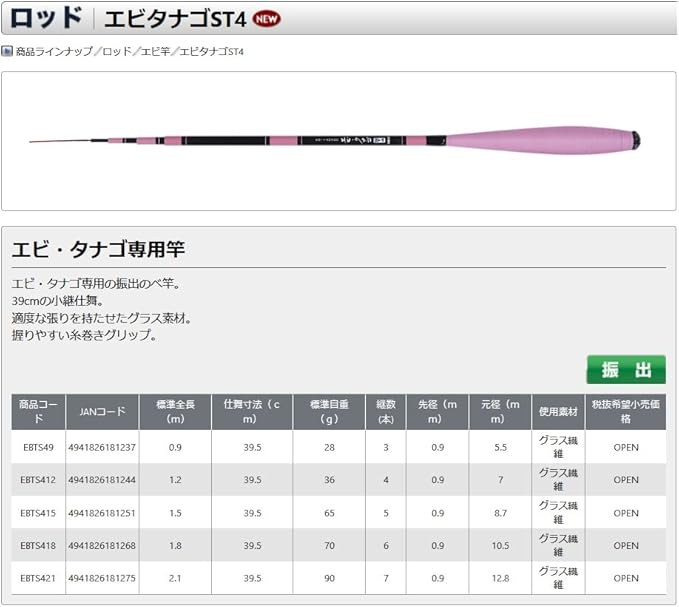 OGK(オージーケー) エビロッド エビタナゴST4