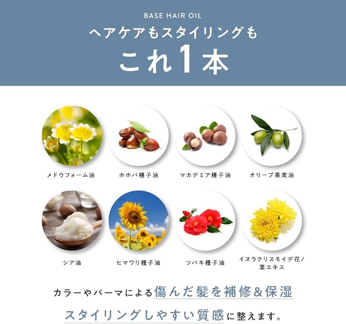 特徴 ヘアケアもスタイリングもこれ一本!カラーやパーマ、アイロンで傷んだ髪を補修、スタイリングしやすい質感へ