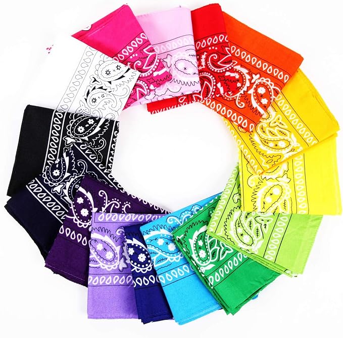 ①[定番のペーズリー柄バンダナレディース、メンズ15枚セット] お洒落アイテムには欠かせないペーズリー柄バンダナセットです。カラフルな全15色を集めてお届け致します。