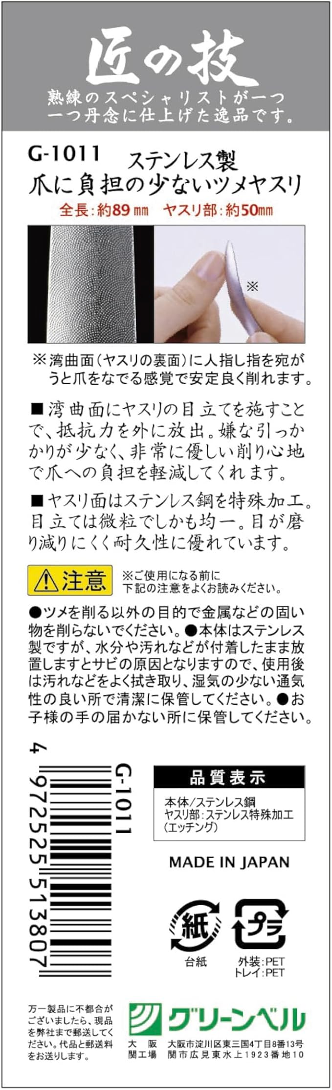 匠の技 ステンレス製 爪に負担の少ないツメヤスリ G-1011