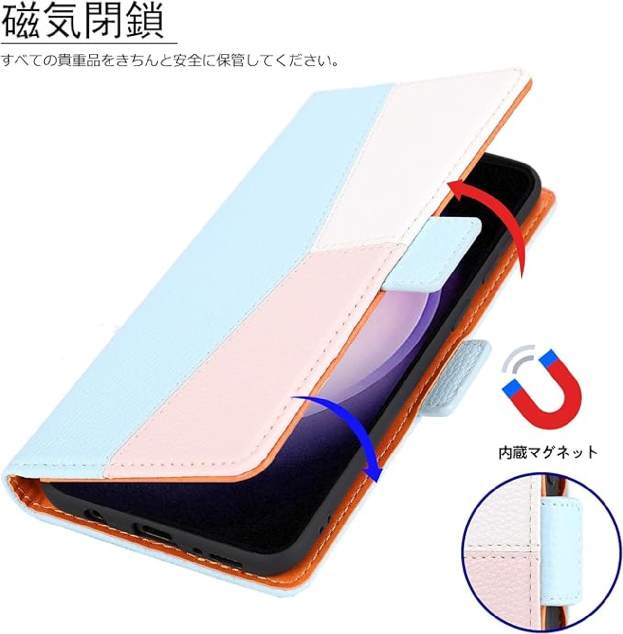 1.【上質な素材】外部は上質な素材を採用しており、放熱性が良く、傷や埃を防ぐことができます。内部のスマホホルダーは柔軟性に優れた TPU 樹脂製ですのでスマホの着脱も容易で女性に優しい作りです。