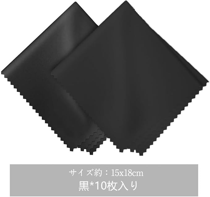 1.サイズ約:15x18cm、黒10枚入り。軽量で折りたたむことができるので、持ち運びや収納に便利です、クリーニングクロスは水洗いで再利用できます。