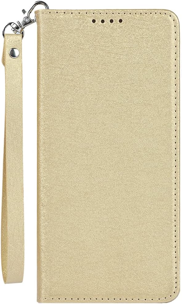 Elick BASIO4 KYV47 かんたんスマホ2 かんたんスマホ2+ 兼用 ケース カバー 薄型 高級PUレザー かんたんスマホ2 A001KC ケース 手帳型 かんたんスマホ2+ A201KC ケース 手帳型 マグネット式 ベルトなし ストラップ付き カード収納 京セラ A001KC ケース スマホケース ゴールド