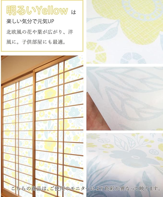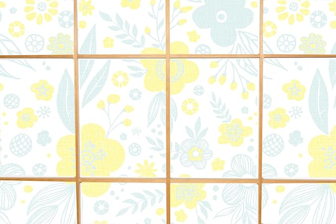 菊池襖紙工場 令和の障子紙 北欧フラワー RS005 ホワイト・イエロー