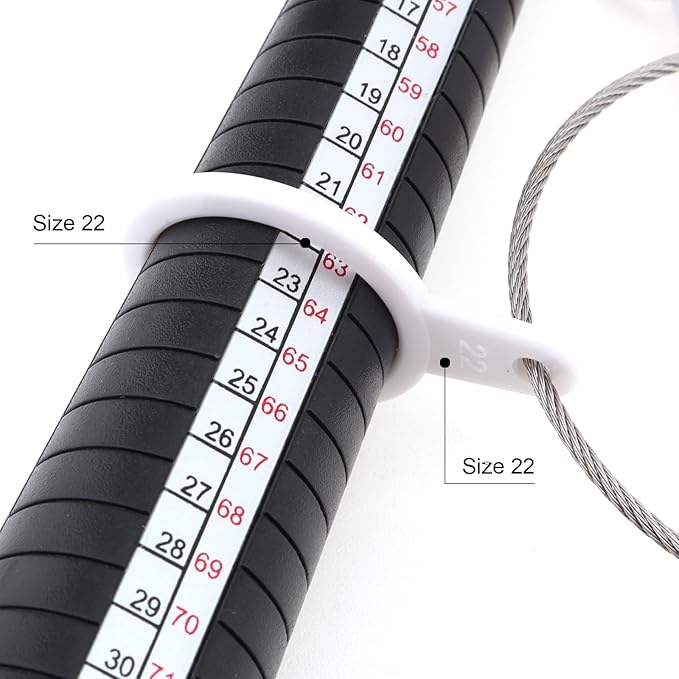 【使いやすい】リングゲージを使用するには、単に希望のリングサイズを決定するために指の上にプラスチックリングをスライドさせます。または、指輪サイズ棒で、指輪をサイズ棒の上でスライドさせ、測定値を読み取ります。