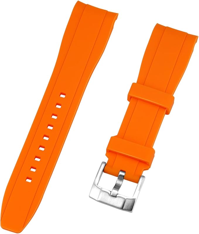 [Kai Tian] 20mm 22mm 腕時計 ベルト シリコーン ゴム ユニバーサル 湾曲した端 時計バンド 黒 白 緑 青い オレンジ 赤 グレー 時計ストラップ 為に ス テンレス鋼のバックル男女