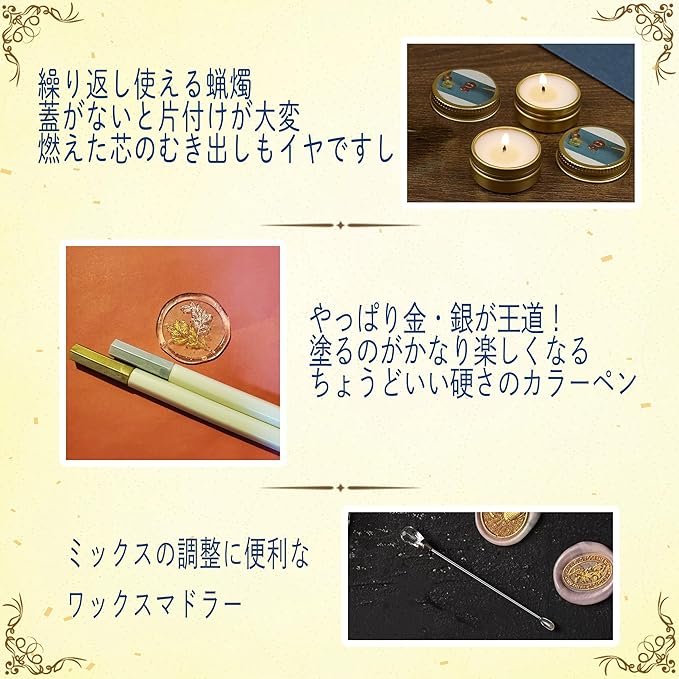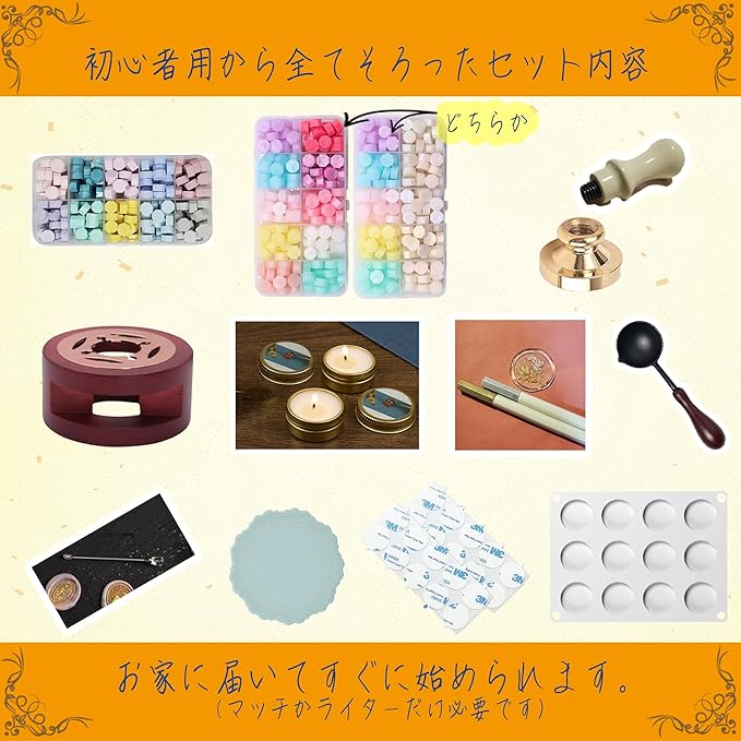 【初心者でも安心!届いたその日から始められるシーリングスタンプセット】 シーリングスタンプとワックスがセットになっており、初めての方でも簡単に使用できます。届いたその日からシーリングスタンプの魅力を楽しめます。