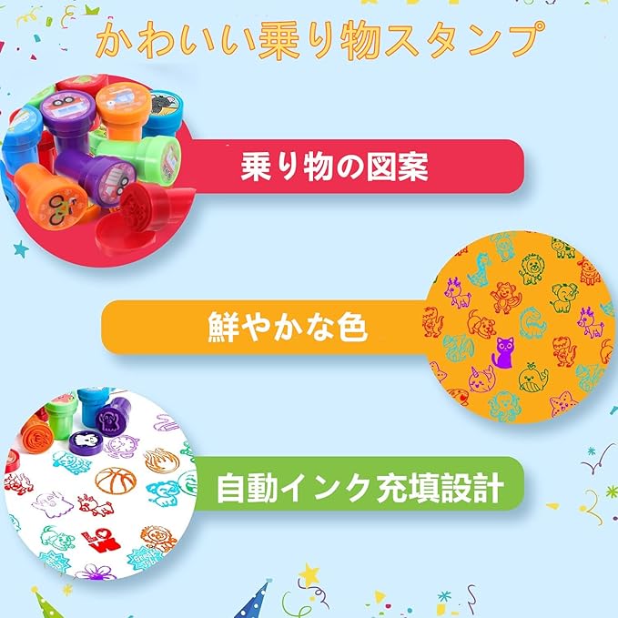 SensaBliss スタンプ かわいい 10個セット 縁日 景品 夏祭り子供 景品 飛行機 オートバイ 乗り物 おもちゃ ミニスタンプ 女の子 男の子 文房具 文具 おもちゃ はんこ インク付き 可愛い 円形 玩具 誕生日 お祭り ごほうび プレゼント