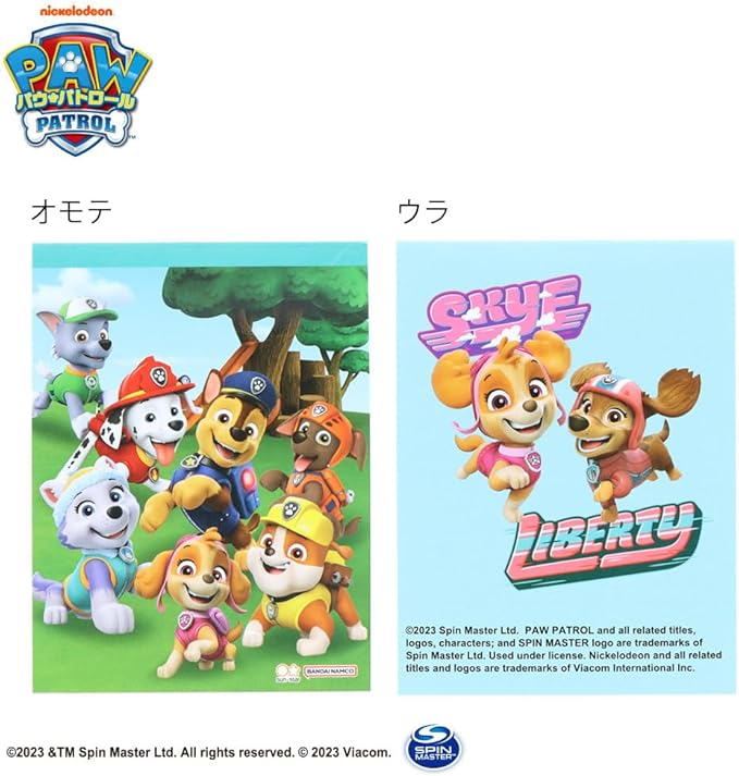 パウ・パトロール柄のスタンプセット。すぐに押して遊べるメモ帳つき。