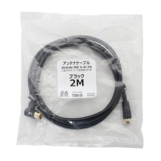 TARO'S アンテナケーブル 1M 4K8K放送(3224MHz)対応 S-4C-FB 4C同軸 地デジ・BS・CS・CATV放送対応 金メッキプラグ L型プラグ(差込式)⇔F型接栓プラグ(ネジ式) エコ簡易パッケージ タローズ ブラック 4CLF-01BK