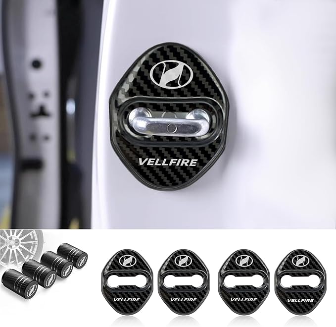 ヴェルファイア 車 カー用品 ドアストライカーカバー Vellfire ヴェルファイア 専用 グッズ 30系 アクセサリー カスタム 内装パーツ, ドアロックカバー 高級鏡面ステンレス製 独創 改良式 4個セット(贈り物: タイヤ バルブキャップ) (カーボン調, VELLFIRE)