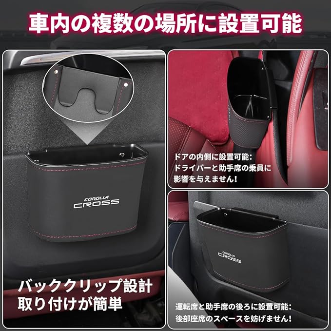 【多機能・専用車対応】この携帯式の車用収納ボックスは多機能で、車内のゴミ箱として、また傘や鍵、ティッシュなどの小物を収納する車内収納ボックスとしても使えます。さらに、このゴミ収納バッグはスタイリッシュな外観デザインで、特別な車のロゴが印刷されており、車に独特の雰囲気と高級感を加えます。適用車種:カローラ クロス COROLLA CROSS 10系 Z X G などのグレード対応します。