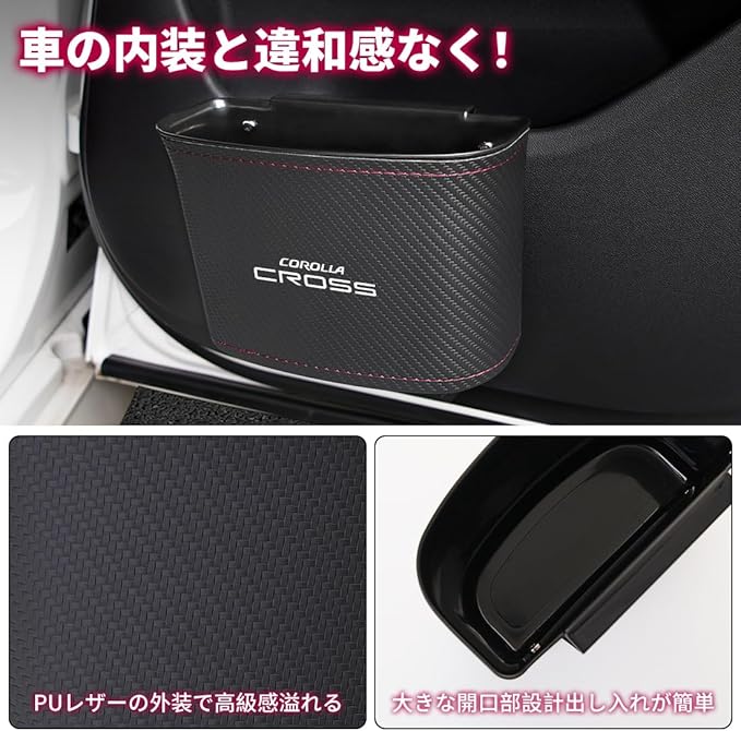 カローラ クロス 専用 車用 ゴミ箱 COROLLA CROSS 10系 Z X G グレード 対応 防水 車 ゴミポケット ドア側や座席の後ろ 設置可能 半円型 小物入れ 収納 車 ゴミ ボックス カー用品 大容量 おしゃれ 便利グッズ 1個セット(カーボン調,カローラ クロス 専用)