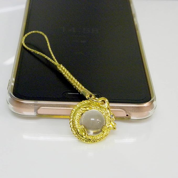[GOOD TIME / ショッピング] 【金運 龍神守り 黄金竜】 | 水晶玉付き 昇竜 商売繁盛 | 開運 根付 ストラップ | 病気平癒 疫病退散