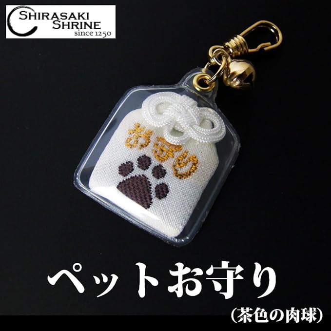 [白崎八幡宮] ペットお守り 肉球 こげ茶色 身体健全/交通安全 フックタイプ 神社で祈願済み