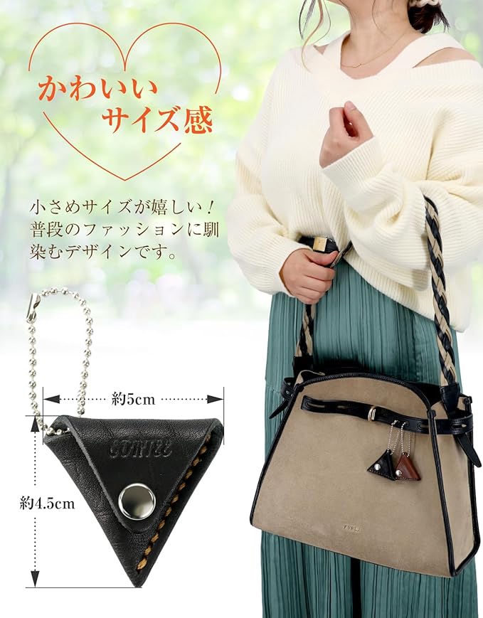国産の本革を使用。9色。沖縄では塩をお守りとして持ち歩く習慣があり、CORTEEでは携帯お守り入れとして、ミニさんかく型のレザーケースの中に沖縄の塩を入れお守りとして制作いたしました。