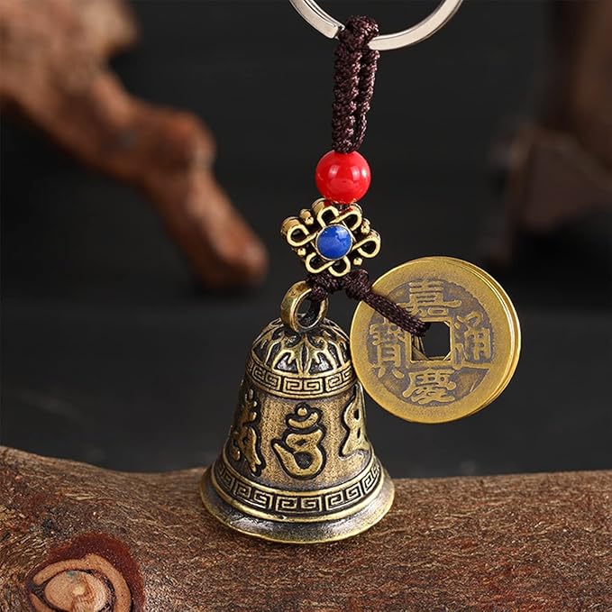 [Lanito] 鈴 風水 風鈴 真鍮 六字真言 五帝銭 小鈴 仏教ベル 開運 風水グッズ 運気 いい音 お守り キーホルダー