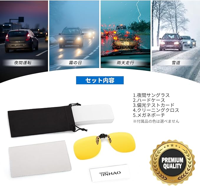 [TINHAO] クリップオン サングラス 偏光レンズ UV400 跳ね上げ メガネ取付用 運転用 アウトドア用 メガネ装着 軽量