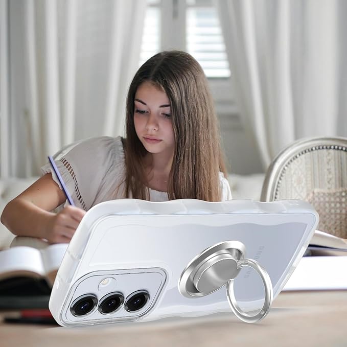 Galaxy A53 5G SC-53C SCG15 ケース クリア ウェーブ リング付き TPU波状のバンパー 透明 スマホケース かわいい うねうね ギャラクシー A53 ウェーブ デザイン 可愛い 韓国 女性用 薄型 人気 おしゃれ 耐衝撃 ストラップホール付き(クリア)