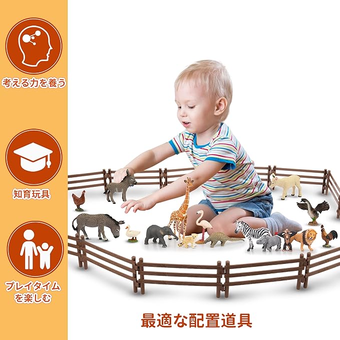 TOYMANY フェンスおもちゃ 動物フィギュア組み合わせ 24セット 馬場農場 プラスチック 人気動物 玩具 誕生日プレゼント クリスマス 新年 飾り物 コレクション 6歳以上