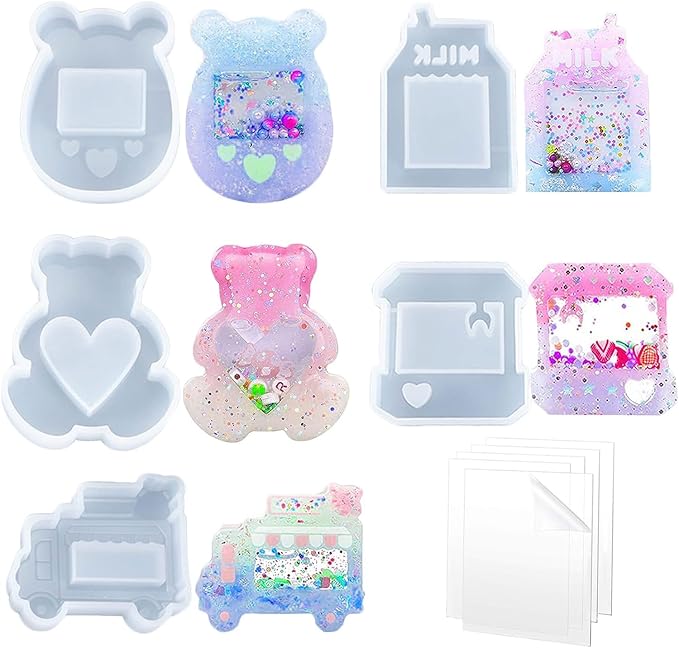 レジン シリコンモールド レジン 型 流砂型 シャカシャカカタログ樹脂型5個セットUFOキャッチャーキッチンカーゲーム機/ベアミルクエポキシ樹脂DIYハンドメイド時計ストラップペンダントキーホルダーペンダント樹脂型装飾再利用可