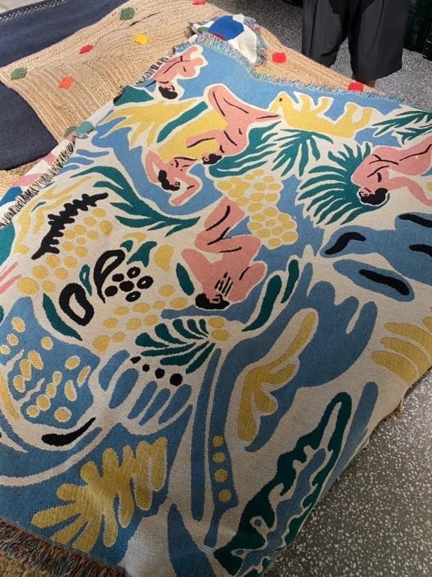 Peel Forest LA ロサンゼルスのアーティスト 南国風,観葉植物柄,遊び心のあるデザイン, ブランケット(ひざ掛け) ライフスタイル, スローケット, ソファカバー,熱帯の女性,ベッドカバー 130X160cm