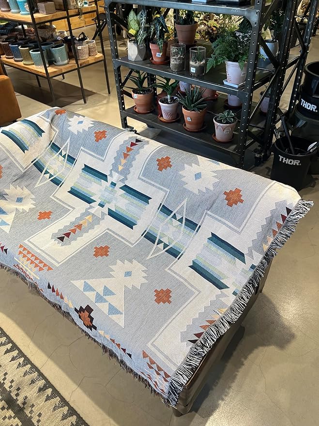 Peel Forest エルパソブランケット マルチカバーメキシカンラグ ネイティブ柄 オルテガ柄 キャンプラグ サドルブランケット アウトドア バンライフ ,グレー,130X160cm……