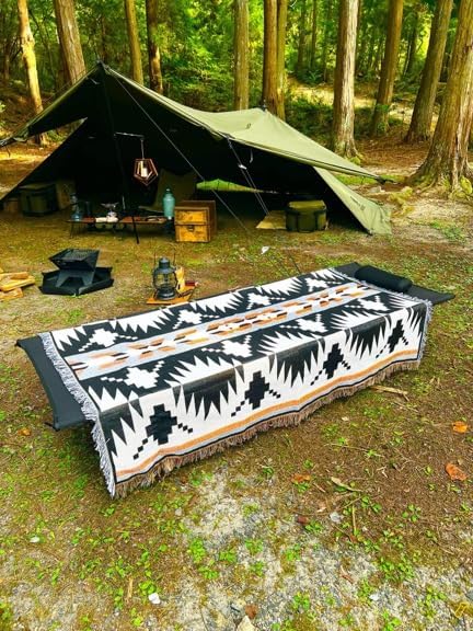 【多機能ブランケット】様々なシーンで活用できます。キャンプだけではなく、お宅やオフィスでブランケット、ひざ掛け、レジャーシートやピクニックマットなどとしては最適です。それに、デスククロスとソファーカバーにも高品な物です。