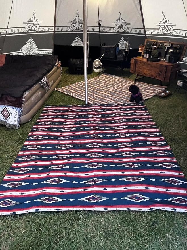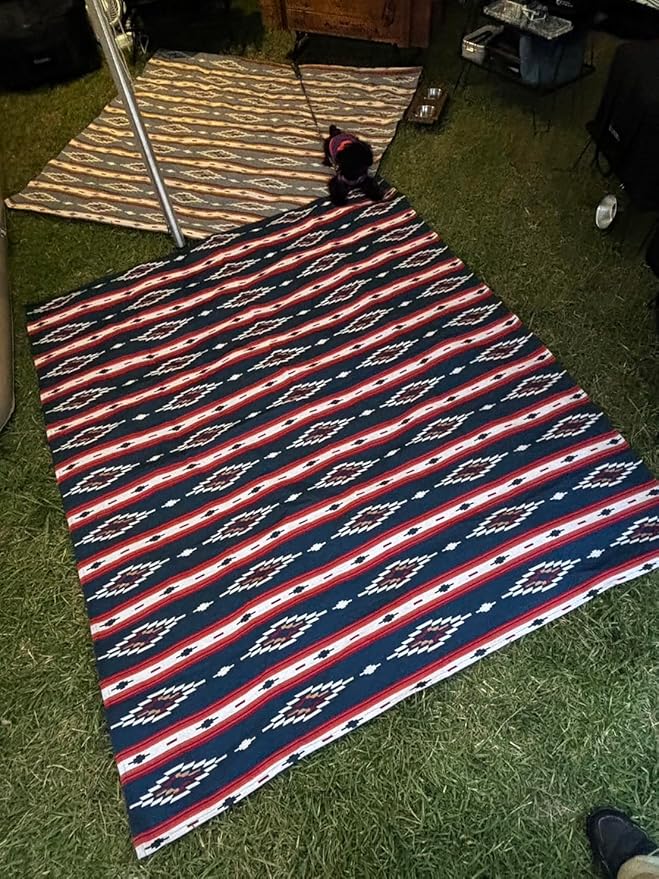 Peel Forest 民族柄, マルチクロス,ピクニック,レジャーシート,キャンプ,アウトドア オルテガ柄,ネイティブ柄,ベッドカバー ネイビー (145X200cm)