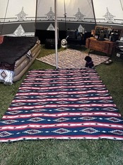 オルテガ柄はアメリカ、ニューメキシコ州のチマヨ村のオルテガ一家が伝えてきたひし形の幾何学的な模様が特徴的な手織物の柄です。